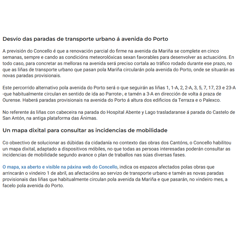 Modificaciones temporales por las obras en el viaducto del CHUAC