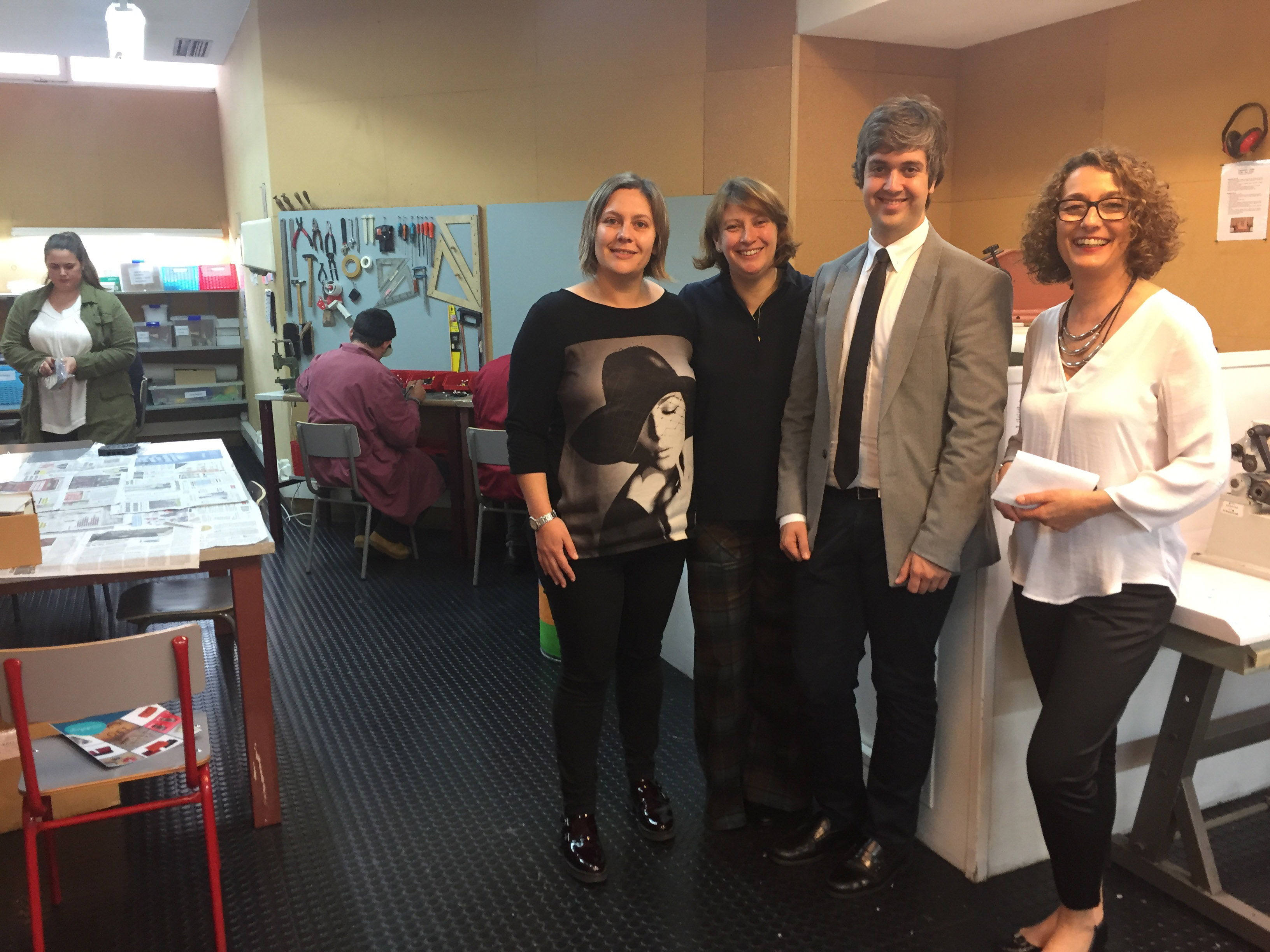 A Coruña, 12 de mayo de 2017.- El director de la Compañía de Tranvías, Ignacio Prada, ha visitado las instalaciones del centro ocupacional donde los beneficiarios de la Fundación Adcor realizan diferentes trabajos de artesanía en cuero o papelería, así como componentes electrónicos.